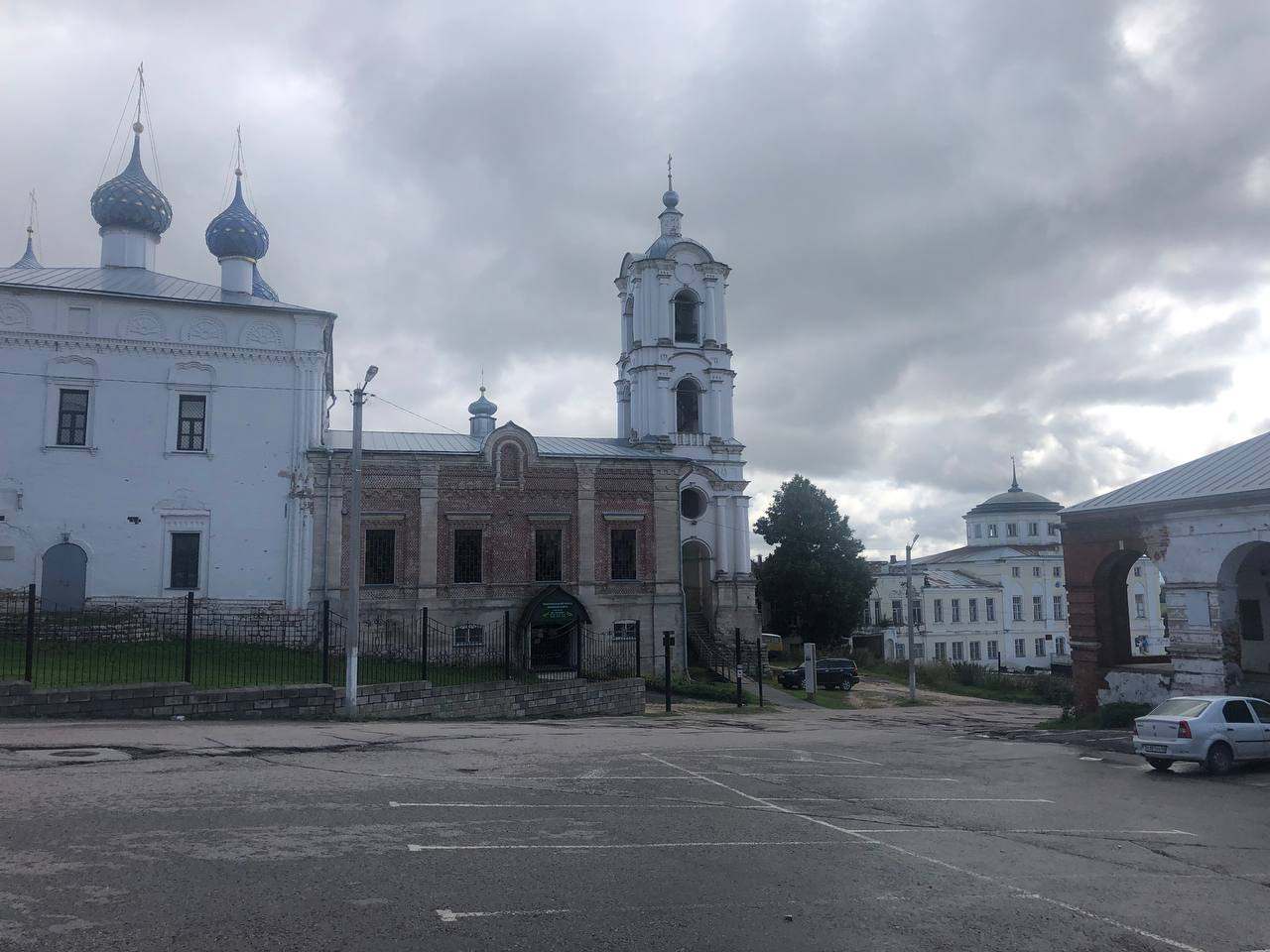 На второй линии от реки начинается центральная городская площадь, чей уникальный архитектурный ансамбль основан на внушительных торговых рядах, способных соперничать и с Гостинным двором Санкт-Петербурга, а венчает ансамбль не менее удивительная Вознесенская церковь в романо-готическом стиле. В целом вся площадь смотрится настолько капитально и величественно, что напоминает какой-то древнеримский полис. Эта Вознесенская церковь (вернее, кафедральный собор) – прямая родственница Георгиевского собора в Гусь-Хрустальном по своей готической сути, а также у них есть и третий брат, Троицкий храм в рабочем поселке Гусь-Железный, что в 18 км от Касимова. Дело в том, что с распространением мальцовской промышленной империи по всему Мещерскому краю (и далее), распространялся и псевдоготический русский архитектурный стиль. В Касимовском уезде Мальцовы владели ткацкими фабриками, и наверняка были связаны деловыми узами с местными промышленниками Баташевыми, заказчиками касимовской готики. И если просто поколесить на машине по касимовской округе, то натыкаешься и здесь, и там на так называемую «деревенскую готику», оживляющую привычный русский пейзаж своей экзотичностью. Я постоянно ловила себя на чувстве, что нахожусь где-то в Италии, а не в центре России… Памятников архитектуры федерального значения вокруг Касимова просто какой-то «зашквар», по-другому не скажешь… Перечислю самые яркие: два храма в селе Погост, женский монастырь в селе Шостье, храмы в селах Сабурово и Ермолово, а также в поселках Телебукино и Сынтул (и это еще не всё)…